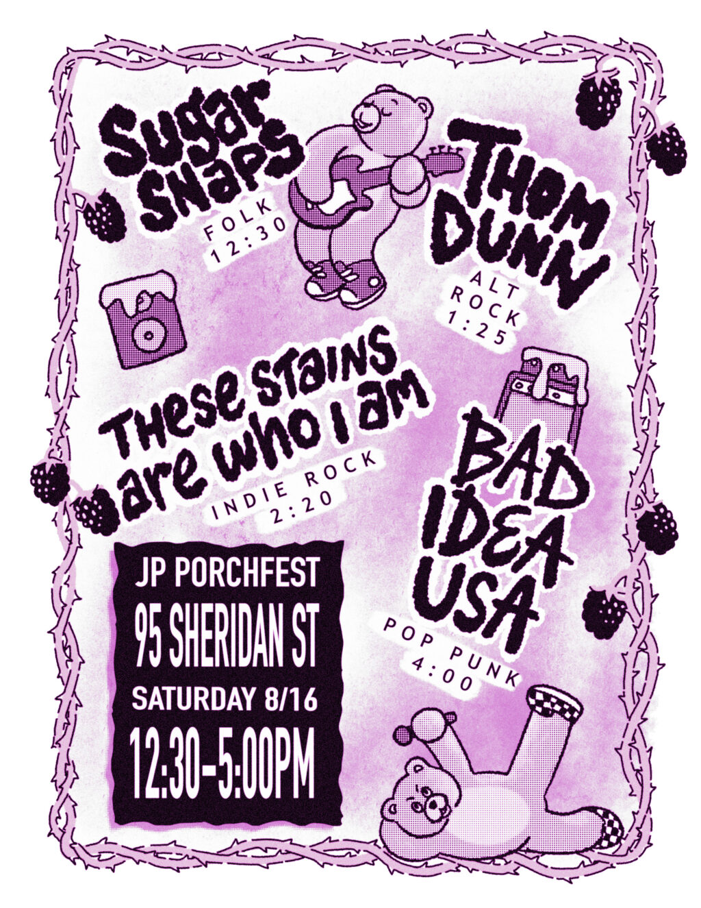 UPDATE: Medford Porchfest has been postponed a day due to rain. We’ll see you on Sunday, June 8th! We’re returning to the stage Ben’s backyard for Medford Porchfest 2025! Come to 13 Shapley Ave at noon for an ourvre-spanning set, including our recent songs “Boneless” and “Blurry Photograph”.